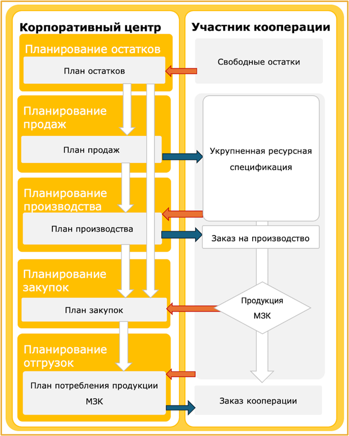 • Формирование на основании оперативного плана производства готовой продукции ДО и плана отгрузки продукции МЗК (за вычетом остатков продукции МЗК) для организации кооперации между цехами ДО в процессе производства  и согласование планов на уровне ДО