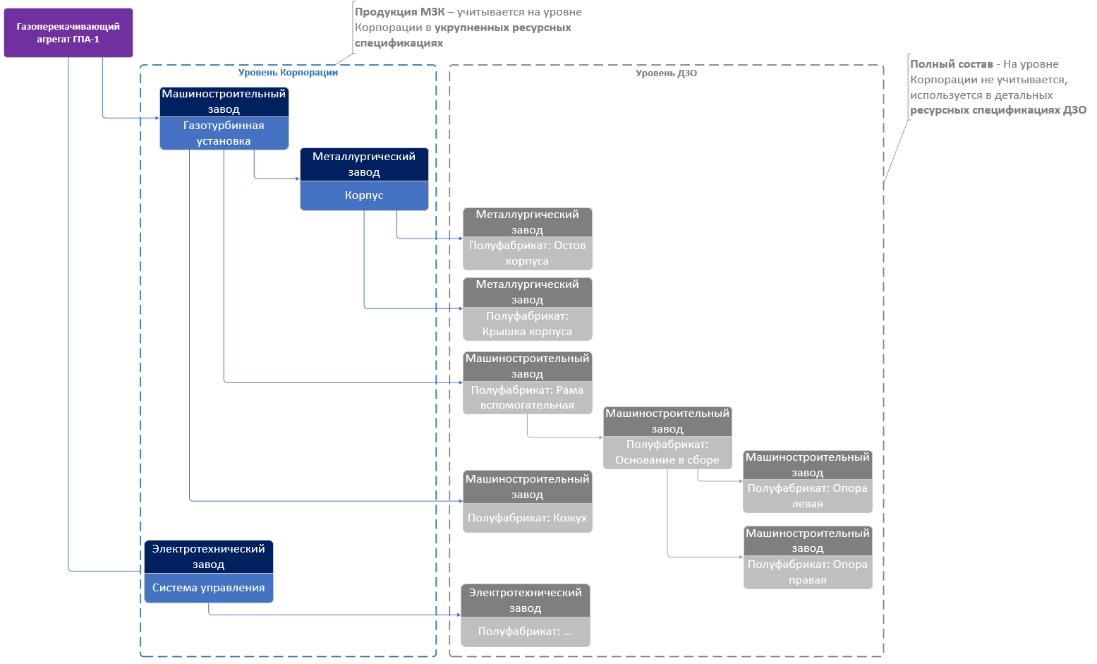 • Управление укрупненной структурой изделий для ССП и МЗК — автоматизированное и интерактивное формирование/обновление Укрупненных ресурсных спецификаций для каждого из ДО