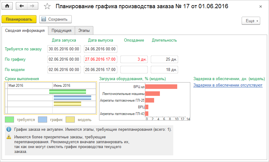 • Согласованность с оперативным планом производства готовой продукции
