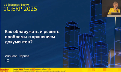 Как обнаружить и решить проблемы с хранением бумажных и электронных документов? (12-й Бизнес-форум 1С:ERP 20 ноября 2025 г., Иванова Лариса, «1С»)