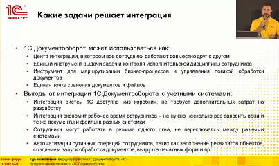Интеграционные возможности «1С:Документооборота» (12-й Бизнес-форум 1С:ERP 20 ноября 2025 г., Курьянов Евгений, «1С»)