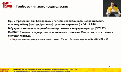 Учет опоздавших документов и автоматизация заполнения уточненных деклараций по прибыли (12-й Бизнес-форум 1С:ERP 20 ноября 2025 г., Трефиленков Дмитрий, «1С»)