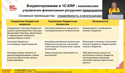 Бюджетирование в «1С:ERP» – комплексное управление финансовыми ресурсами предприятия (12-й Бизнес-форум 1С:ERP 20 ноября 2025 г., Ромайкина Анна, «1С»)