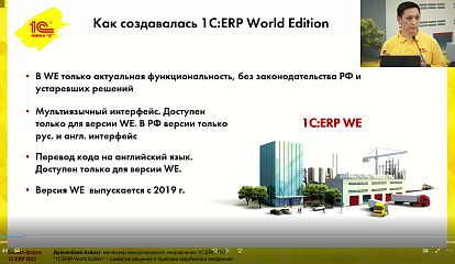 «1C:ERP World Edition» – развитие решения и практика зарубежных внедрений (Бизнес-форум 1С:ERP онлайн 17 ноября 2021 г., Дуйсенбаев Кайрат, «1С»)