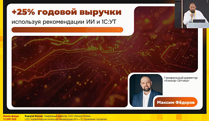 +25% годовой выручки используя рекомендации ИИ и «1С:Управление торговлей» (12-й Бизнес-форум 1С:ERP 20 ноября 2025 г., Федоров Максим, ООО «Конкор-Оптика»)