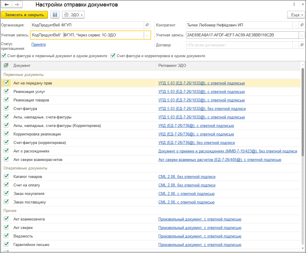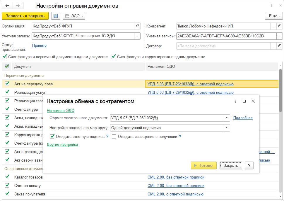 - Настройка ЭДО в 1С:Рознице и 1С:УНФ