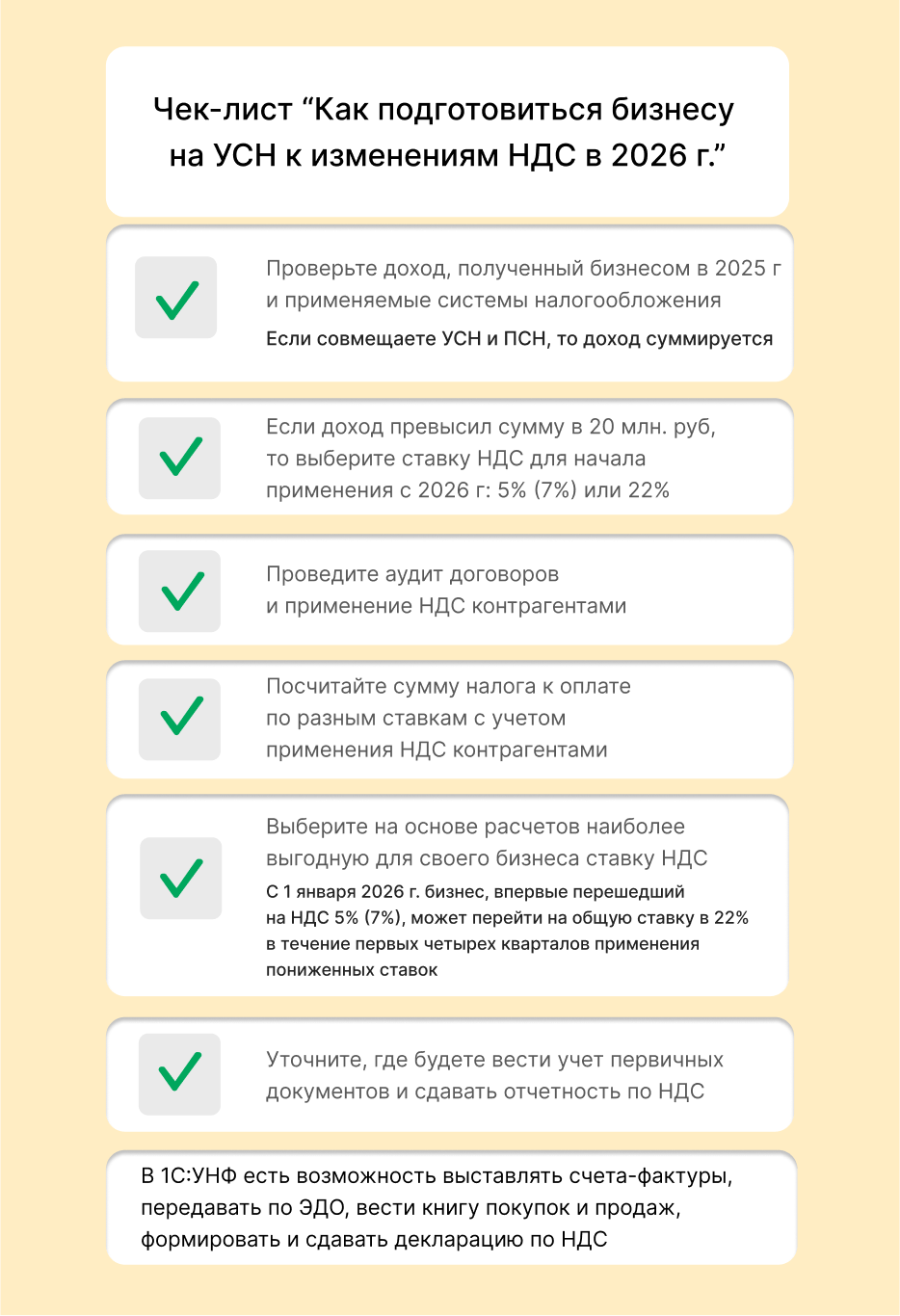 В первую очередь посчитайте свой доход за 2025 год. Если приблизились к лимиту в 20 млн рублей или уже превысили, следует подготовиться к уплате НДС.