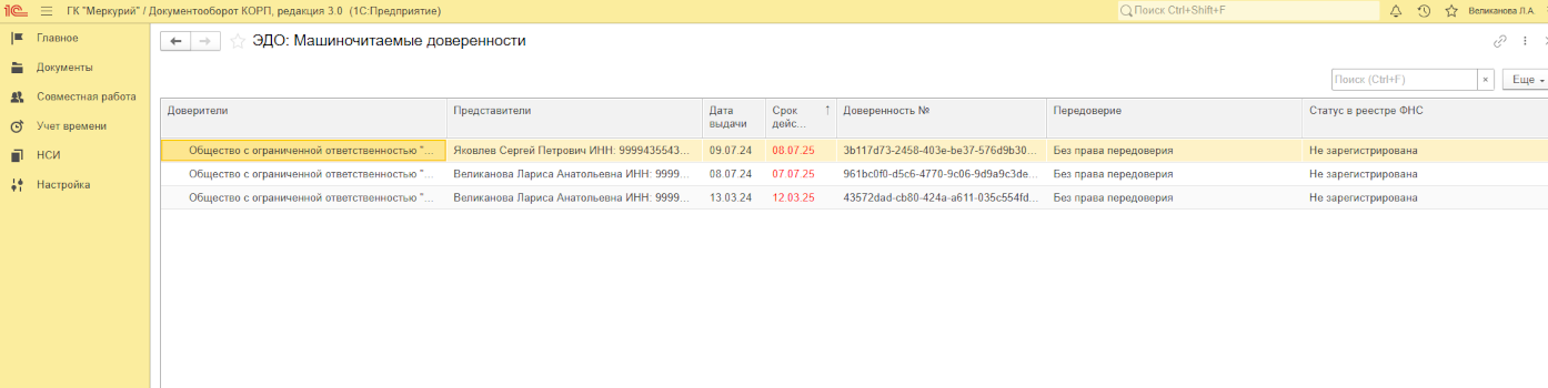 В случае подписания электронных документов МЧД выпустить необходимые МЧД в 1С-ЭДО /"1С:Документообороте".