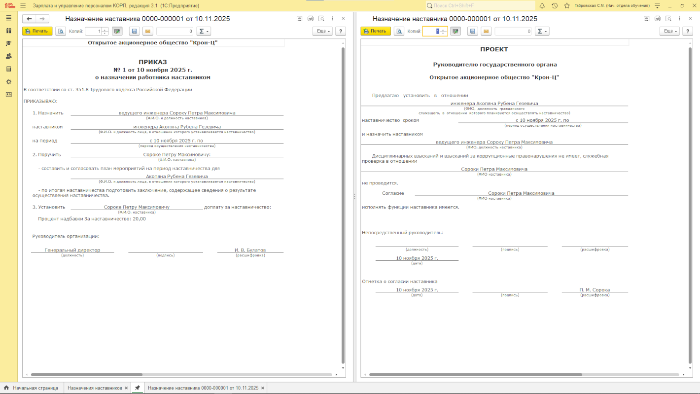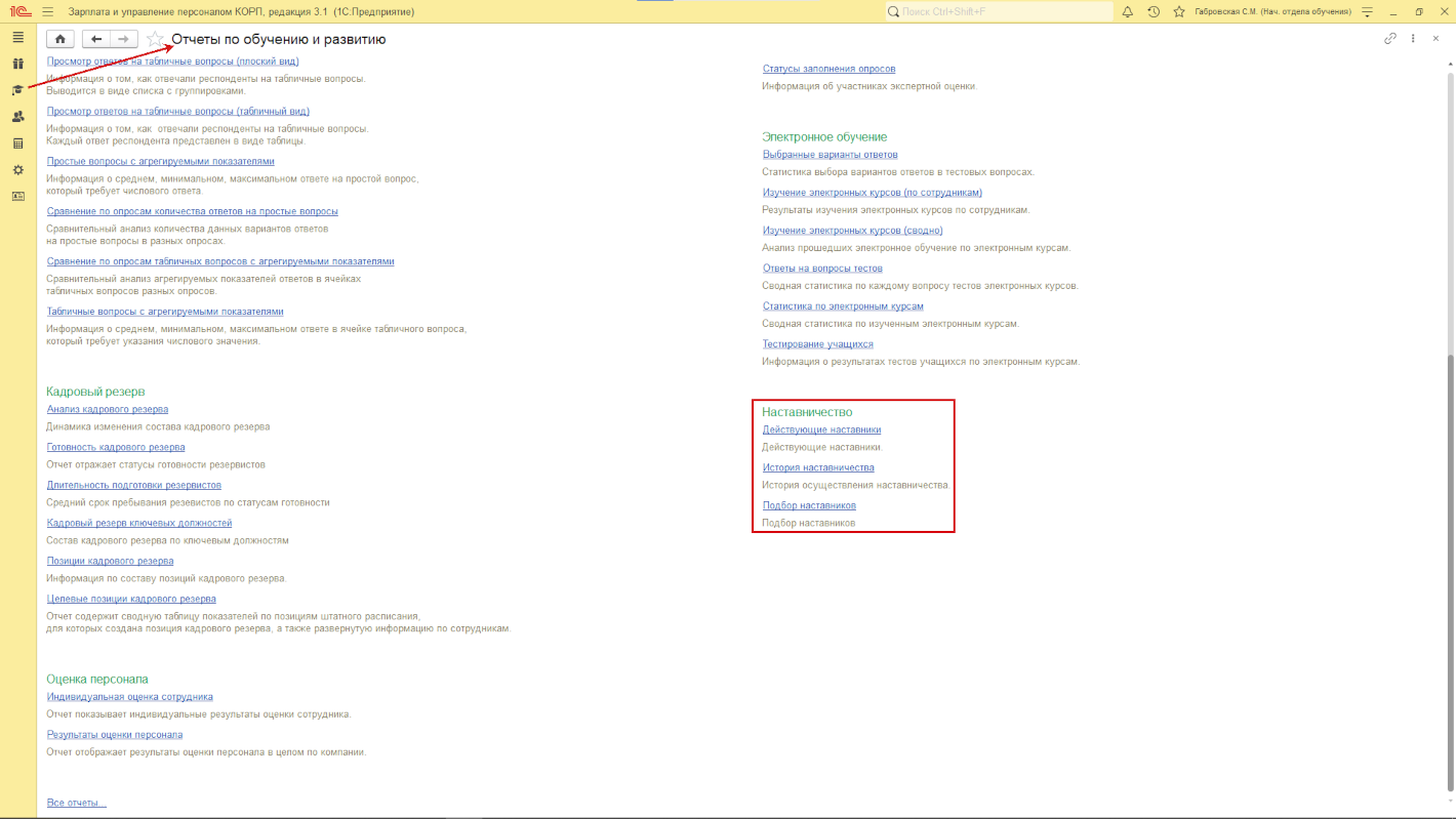 Появились новые отчеты и печатные формы. В карточке сотрудников наставников и наставляемых теперь отражается история наставничества.