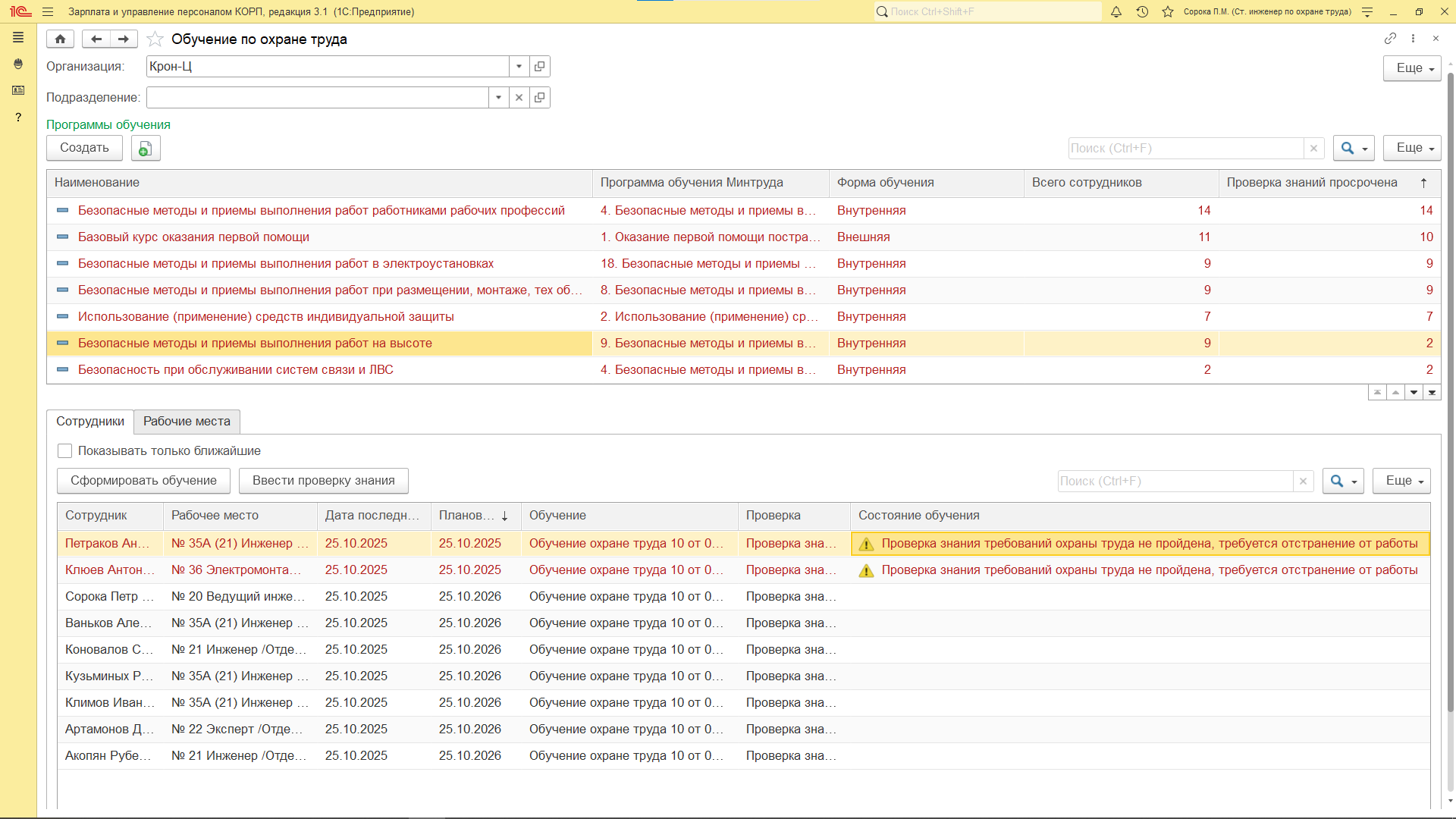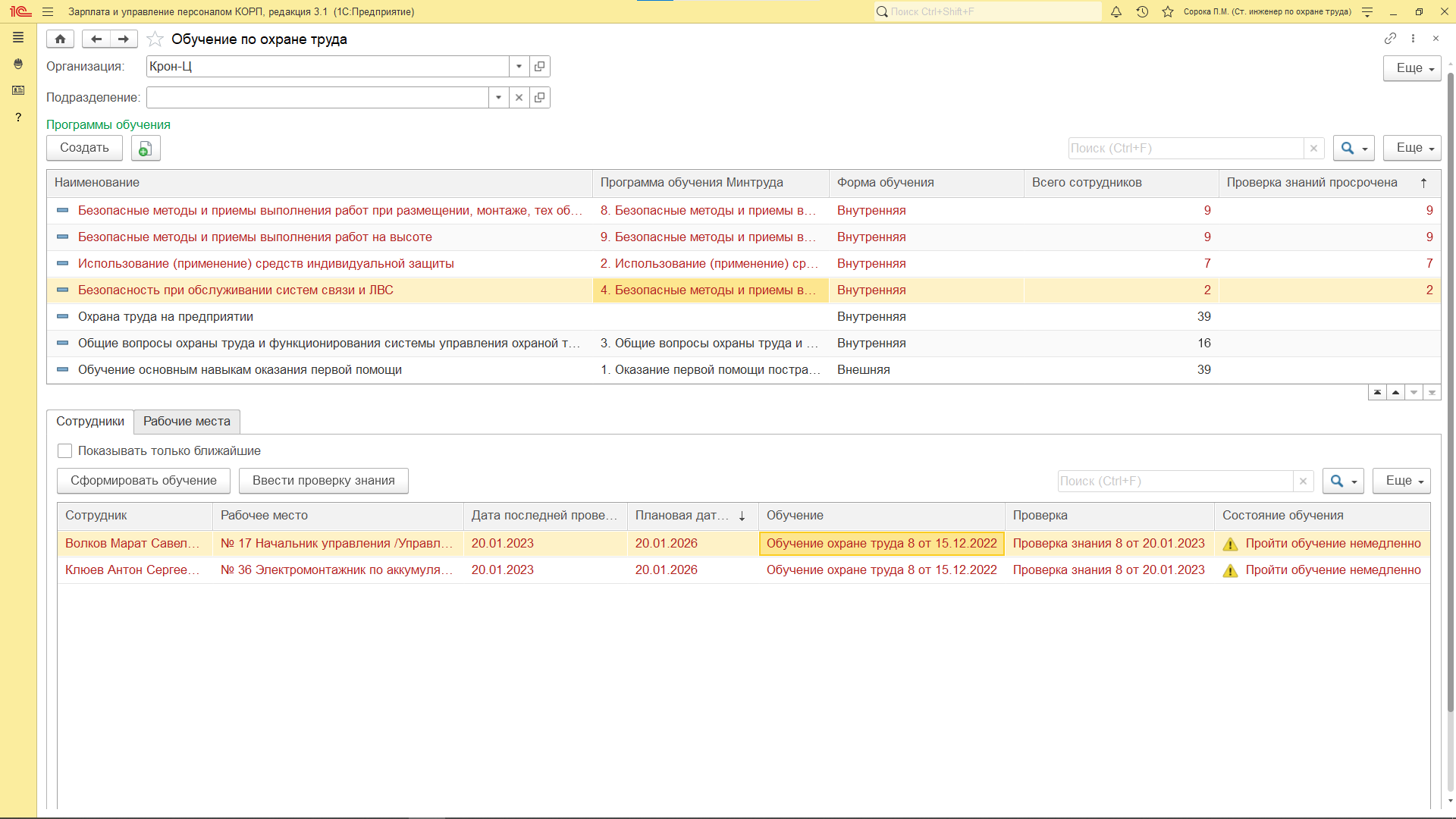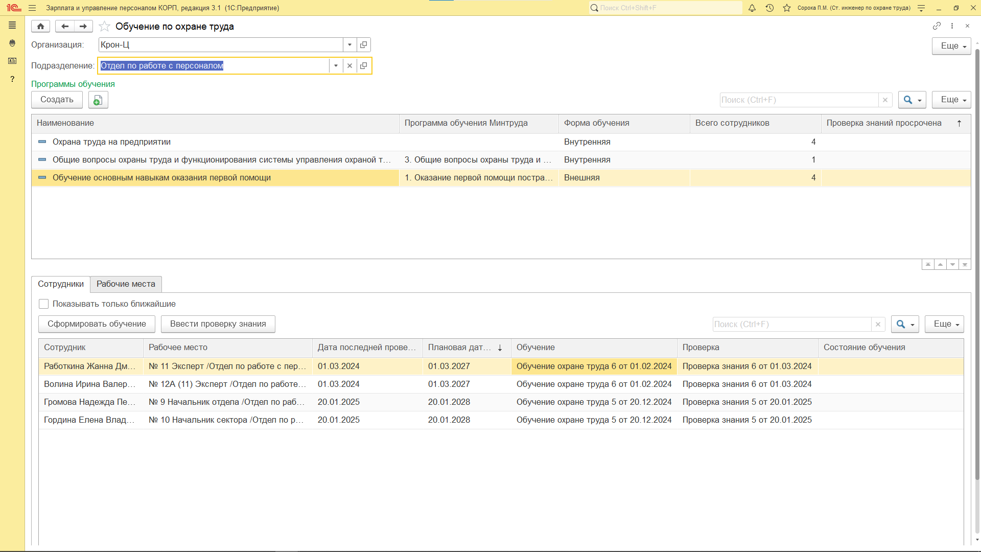 В разделе Охрана труда для Специалистов по охране труда есть помощник Обучение охране труда, который позволяет: