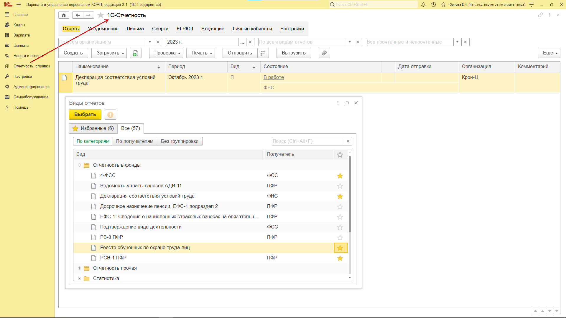 В Охрана труда/Отчеты по охране труда добавлены отчеты: