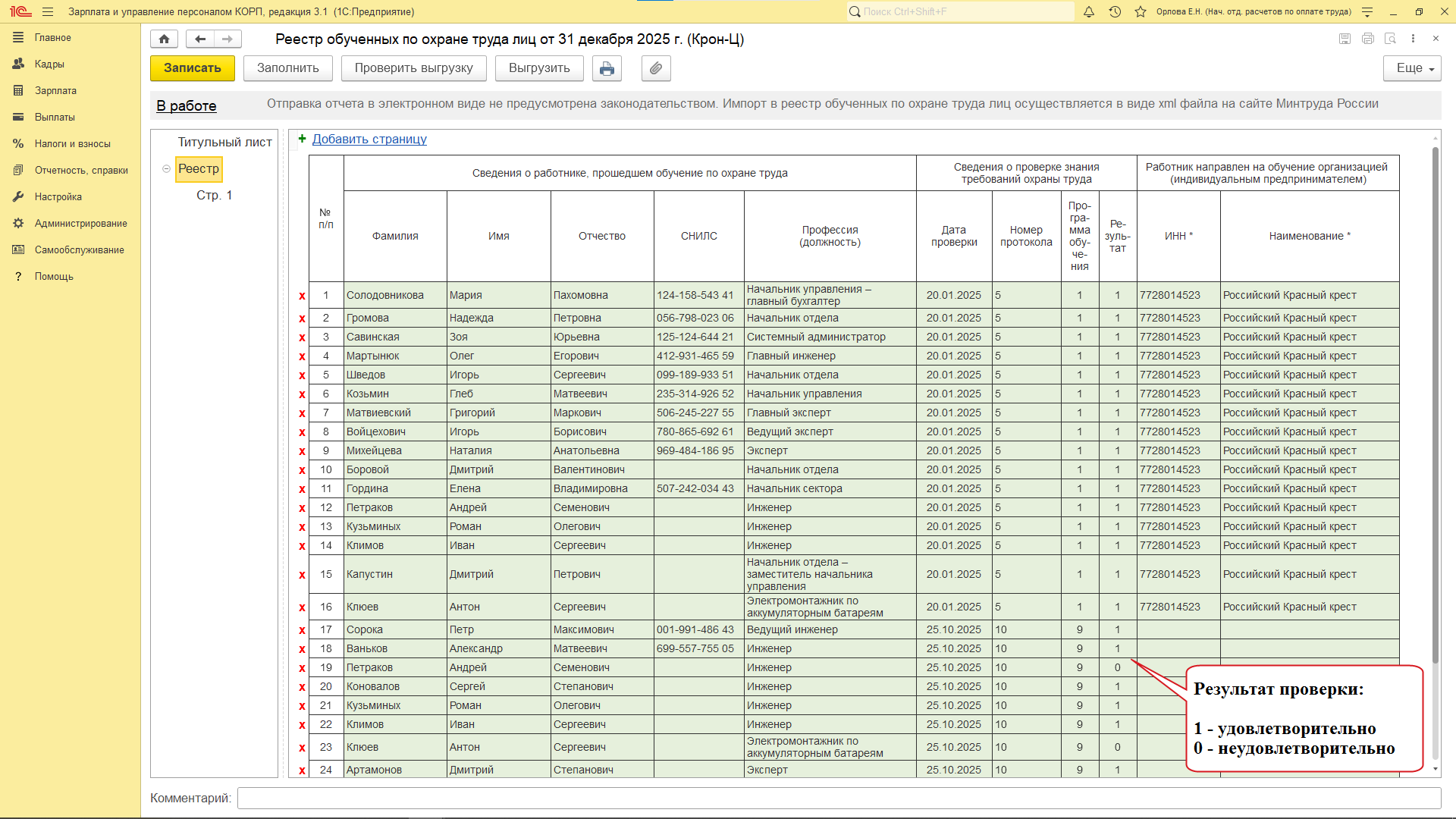 В Реестр обученных автоматически переносятся данные о сотрудниках, которые прошли обучение и проверку знаний по программам с кодом из Классификатора.