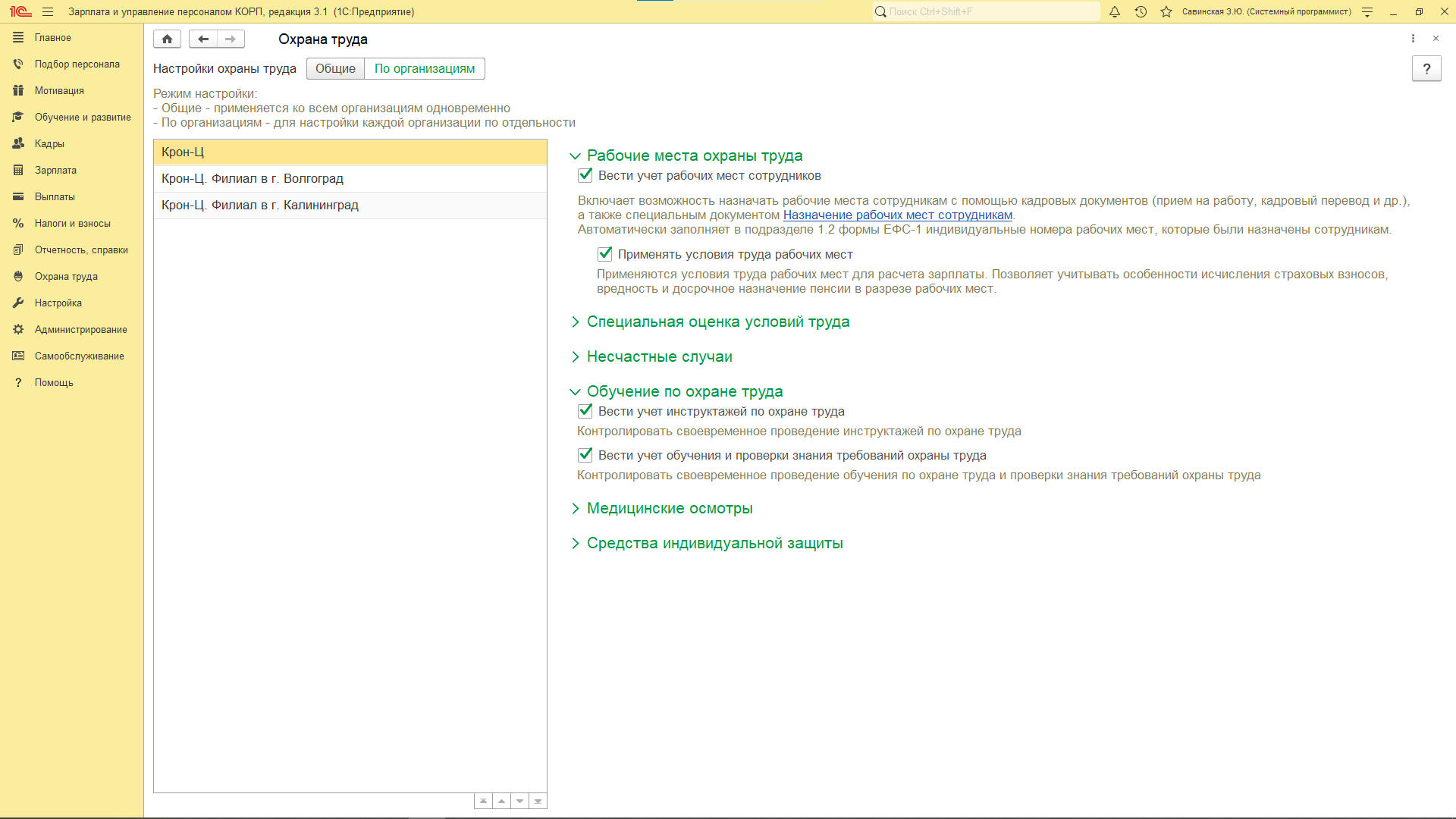 Чтобы начать учитывать и контролировать обучение по охране труда, Администратор включает опцию в Настройка/Охрана труда.