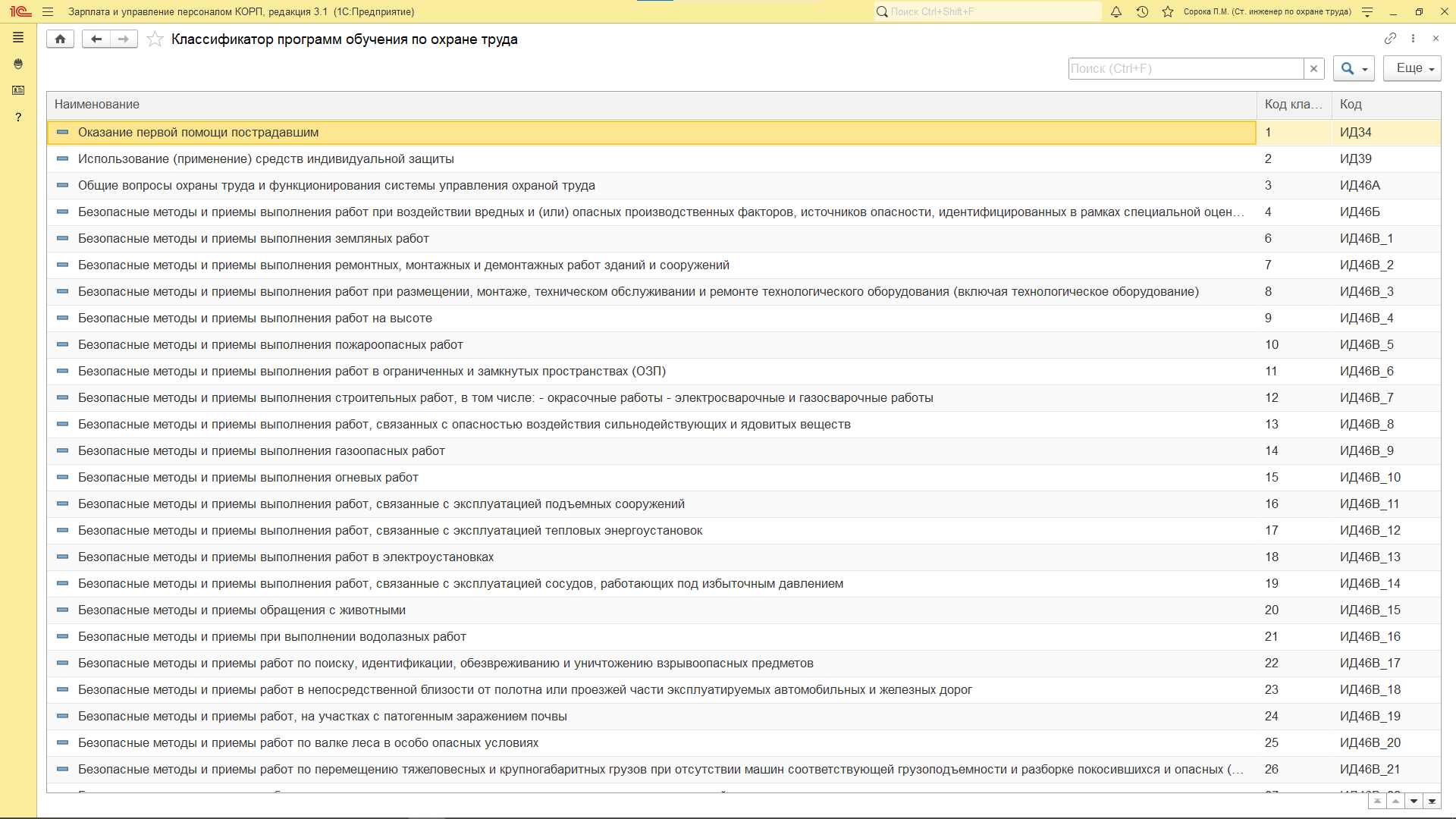 В поставку включен предзаполненный Классификатор программ обучения по охране труда.