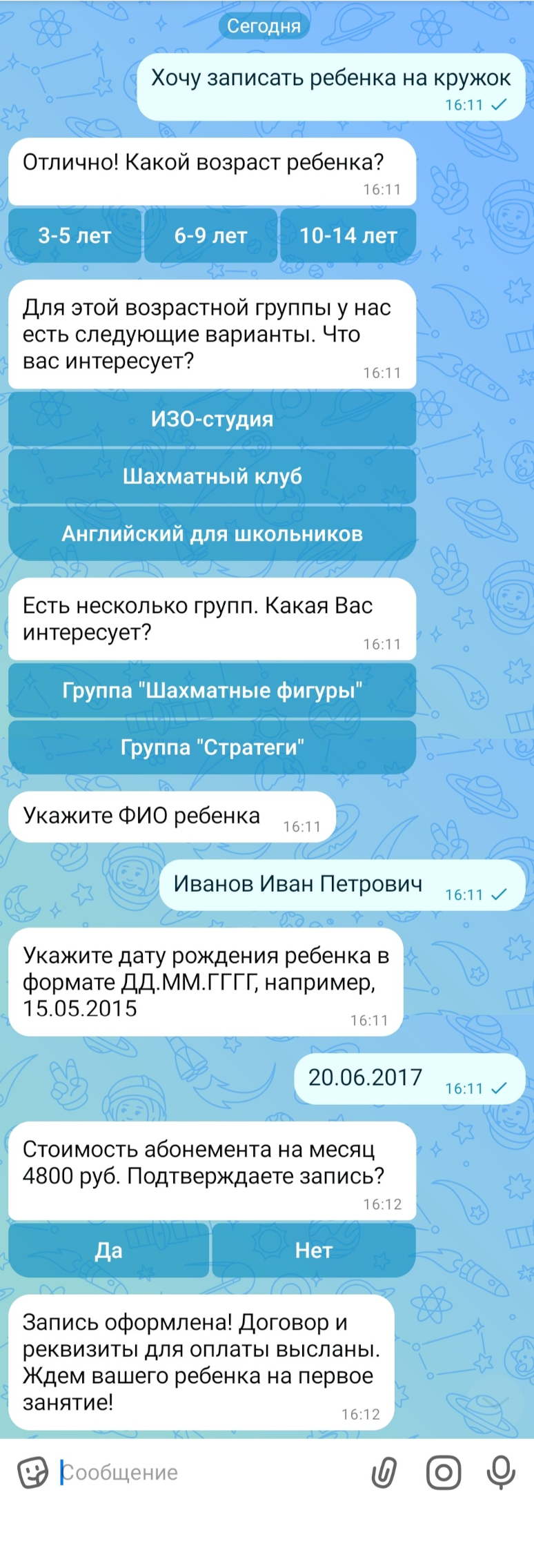 Родители звонят, чтобы узнать расписание, наличие мест, стоимость, а менеджеры постоянно повторяют одну и ту же информацию.