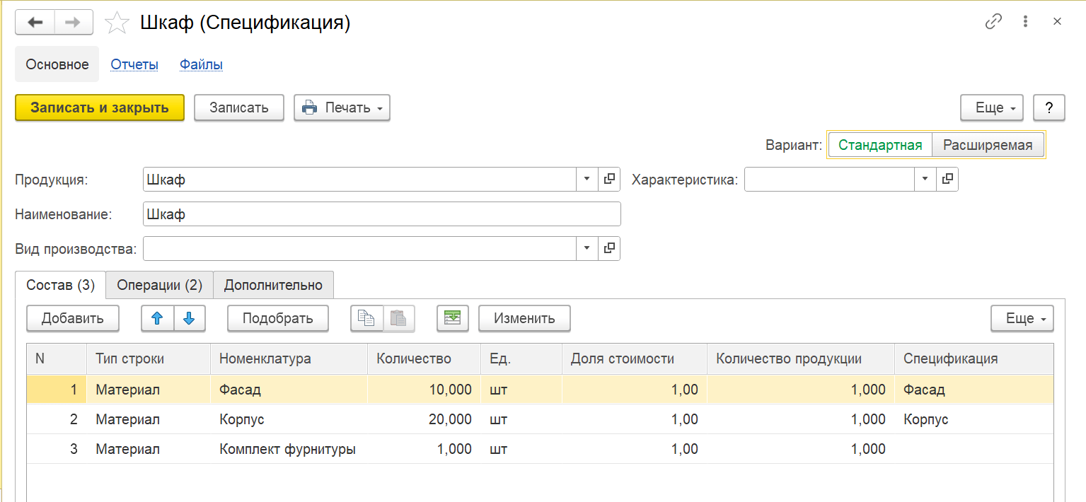 Шкаф состоит из корпуса и фасада. Как правило, фасады более сложные в производстве, и их делают отдельно, а корпус всегда производится более просто. Это отдельные части для одного целого, которые можно производить параллельно. Укажем материалы и операции для каждой составляющей шкафа.