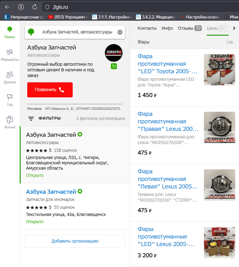 Постепенно компания росла, появлялись новые сотрудники, новые запчасти, новые каналы продаж. Первым из них стал сайт DROM.RU. Он хорошо известен многим людям: кто-то заходит почитать статьи о машинах, кто-то для выбора нового автомобиля, ну и конечно много посетителей ищут на нем запчасти и аксессуары для своих «Ласточек». Второй площадкой стала 2ГИС.