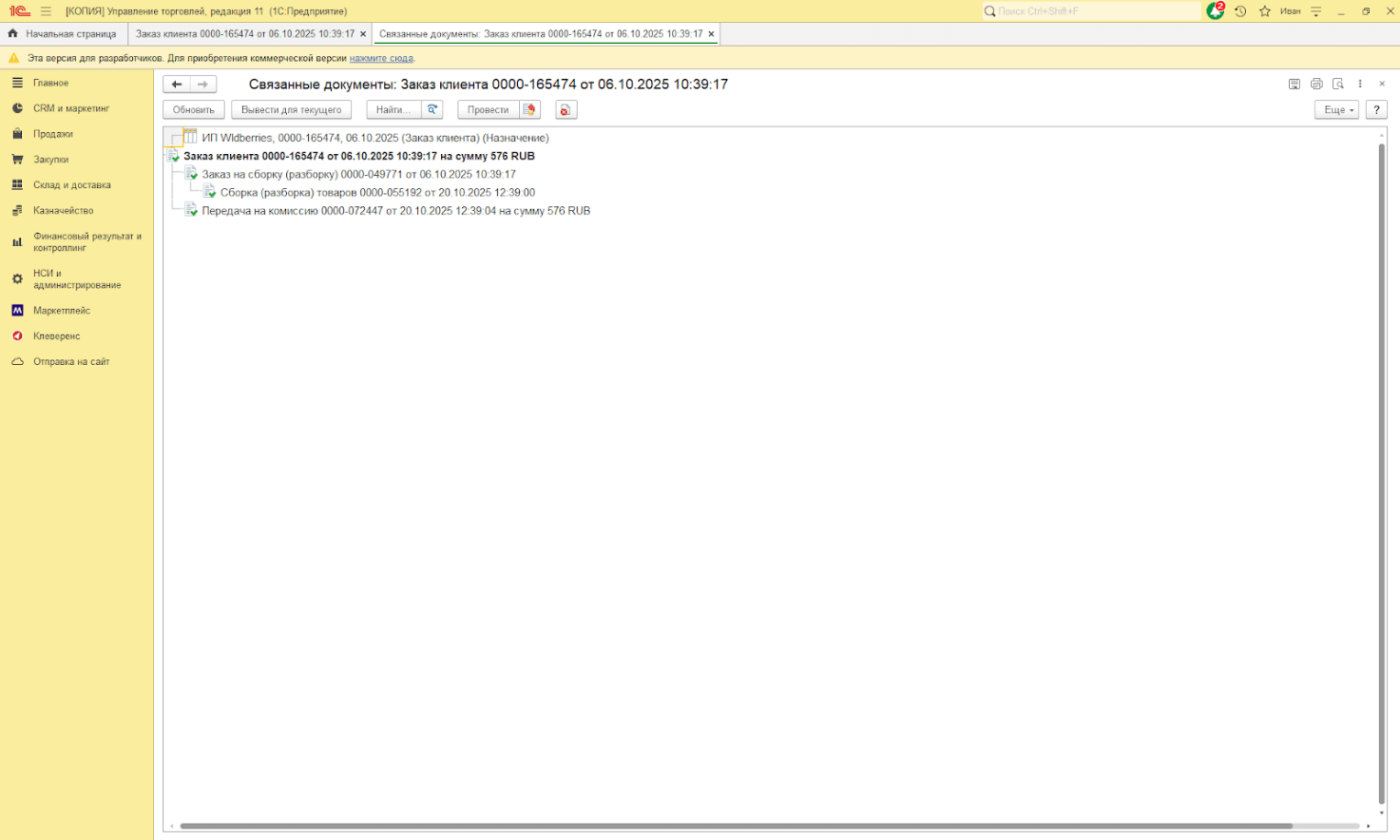 Также доработали условия для возвратов и отказов, чтобы цепочки не ломались. Тем самым обошли типовые ограничения 1С: УТ 11, где нет встроенного учета таких сценариев.