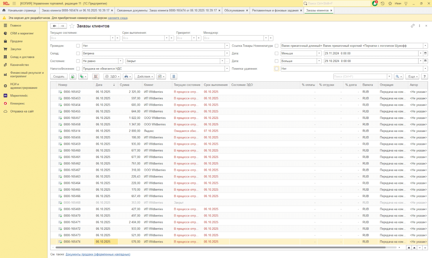 Эти доработки должны были позволить одному сотруднику обрабатывать до 50 заказов одновременно вместо 1−2, устранив ограничения типового функционала 1С:УТ 11. Это упростило бы работу сотрудников и владельца, освободив время для роста продаж и развития бизнеса.