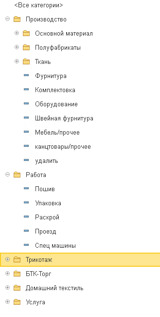 Совместно с заказчиком создали оптимальную структуру справочников номенклатуры для удобной навигации и контроля дублей. В том числе составили четкую иерархию категорий номенклатуры с использованием дополнительных свойств, с заведением операций и работ для фиксации в документах производства.
