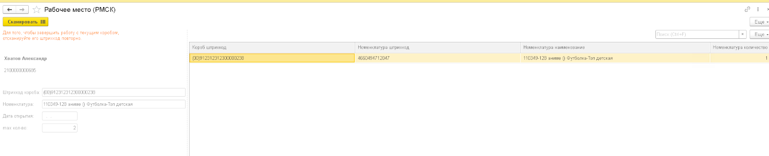 На финальном этапе производства для упаковщика создали отдельное рабочее место, где он может фиксировать агрегацию (формирование коробов) для определенной номенклатуры, контролировать корректность штрихкодов коробов и количество единиц номенклатуры в одном коробе для упрощения внутренней и внешней логистики.