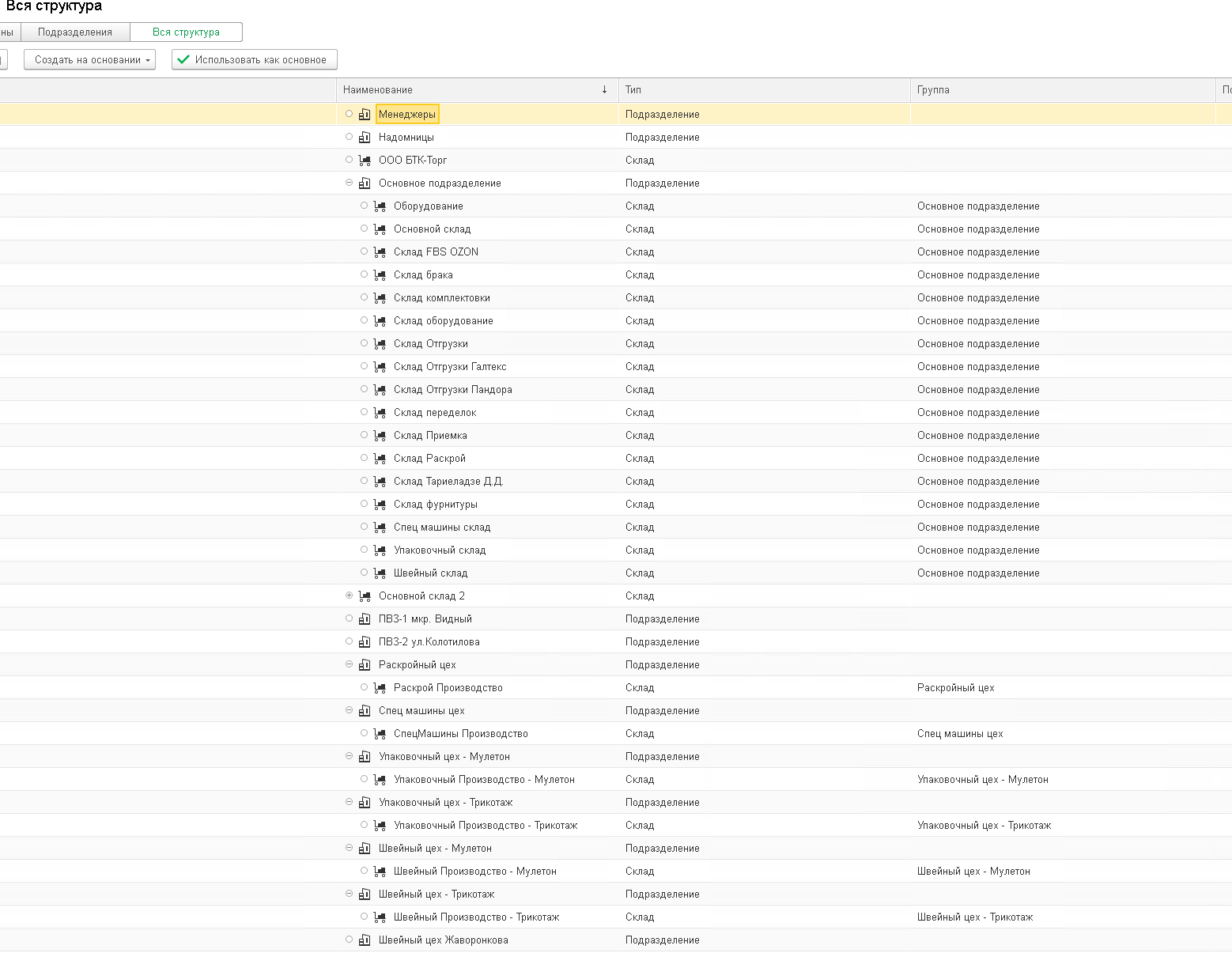 Для корректного учета выпуска полуфабрикатов и готовой продукции настроили структуру организации. Она позволяет «привязывать» сотрудников к подразделениям организации, присваивать им штрихкоды и автоматически фиксировать сдельные наряды.