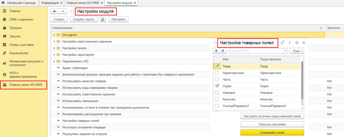 Настройки модуля склада AS WMS + доработки системы по маркировке: