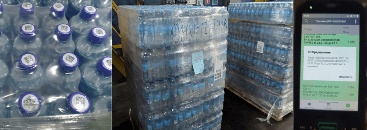 Благодаря адаптации паллет и упаковок с уникальными маркировками «КИТУ», скорость процесса приемки выросла до 20%. Сейчас процесс приемки и пересчет количества паллет проходит с помощью ТСД. Таким образом, после сканирования этикетки состав паллеты или упаковки подтягивается по штрихкоду «КИТУ» и попадает в остатки системы. Нет необходимости использовать затратное по времени сканирование марки каждой бутылки или ручной ввод количества продукции на ТСД.