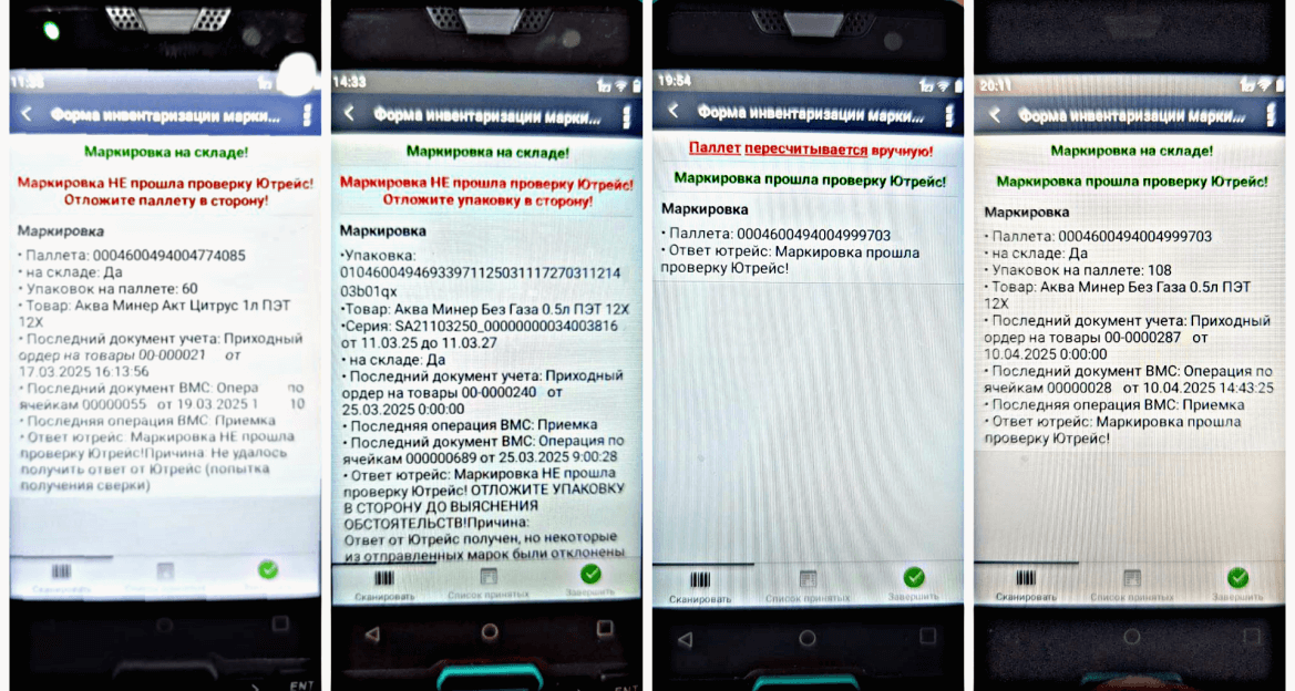 - Реализовали корректное поведение системы в случае сканирования маркировки товара с превышением количества или маркировки отсутствующего товара. В этом случае маркировки никуда не записываются.