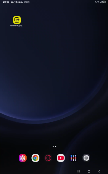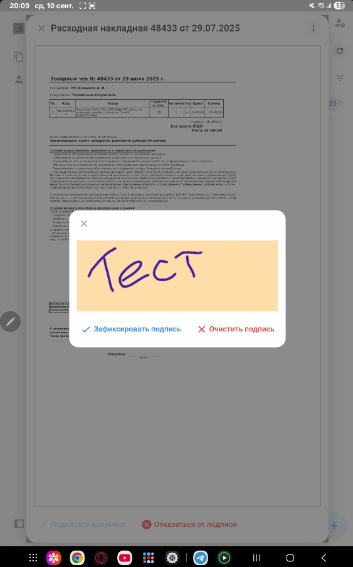 При открытии отображается ПФ в нижней части экрана прикреплена область для подписания стилусом или пальцем. |