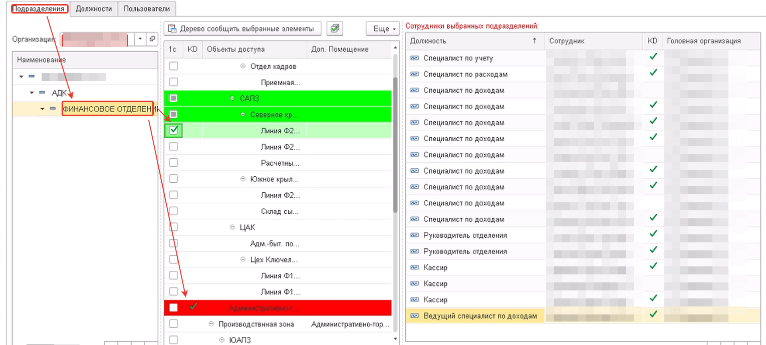 АРМ «Настройка доступа». Организовали быстрый и удобный механизм назначения и корректировки доступа по подразделениям, должностям и пользователям.