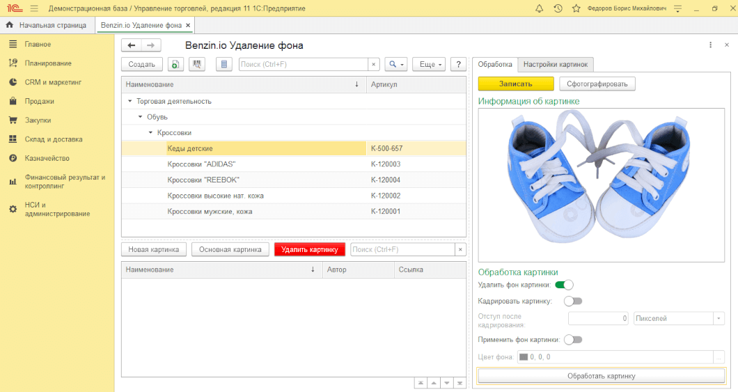 - Если фото, полученное с камеры в 1С с уже удаленным фоном и откадрированное с нужными границами, удовлетворяло своим качеством, контент менеджер нажимал кнопку «записать» и фото записывалось в карточку товара.
