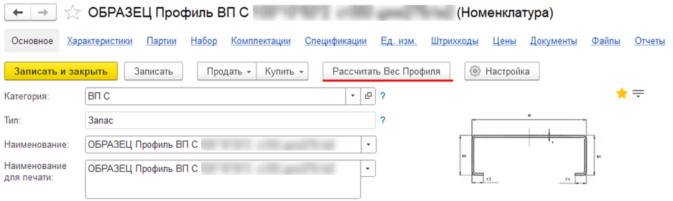 После внедрения 1С:УНФ расчет выполняется за 30−40 секунд. В карточке номенклатуры появилась команда «Рассчитать параметры профиля», по клику на которую система сама определяет, какие данные нужно ввести, и выполняет вычисления автоматически. Для разных форм профилей созданы собственные алгоритмы и встроена проверка заполнения.