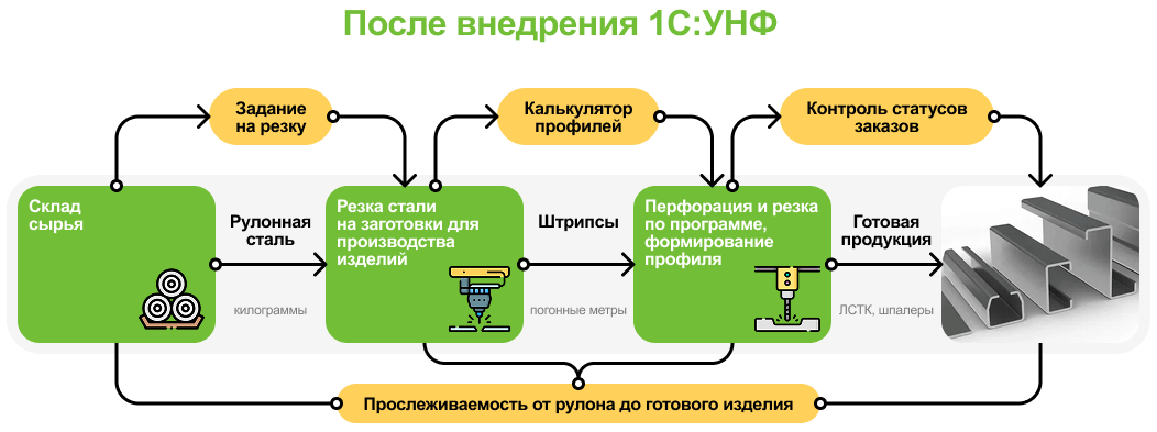 В проекте специалисты нашей компании «СофтЭксперт» максимально использовали типовые возможности 1С:УНФ. Плюс к этому — с учетом специфики деятельности заказчика сделали глубокую доработку блока расчета резки.