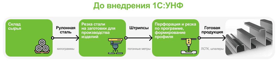 До внедрения 1С:УНФ инженеры компании рассчитывали параметры профилей — ширину развертки, массу и другие характеристики — вручную в Excel таблицах. Данные не сохранялись, пересчитывались заново, часто возникали ошибки. На оформление заказов уходило до 30−40 минут в день.