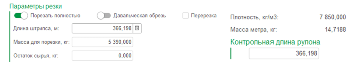 Параметры резки — просто и точно. Основная сложность заключалась в пересчете единиц измерения: сырье поступает в килограммах, а готовая продукция выпускается в погонных метрах. Как решили этот вопрос?