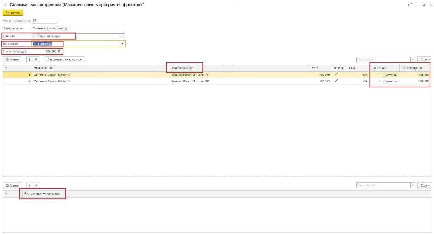 1. Действие: в данной ситуации есть возможность выбора товарной скидки или же скидки на набор товаров.