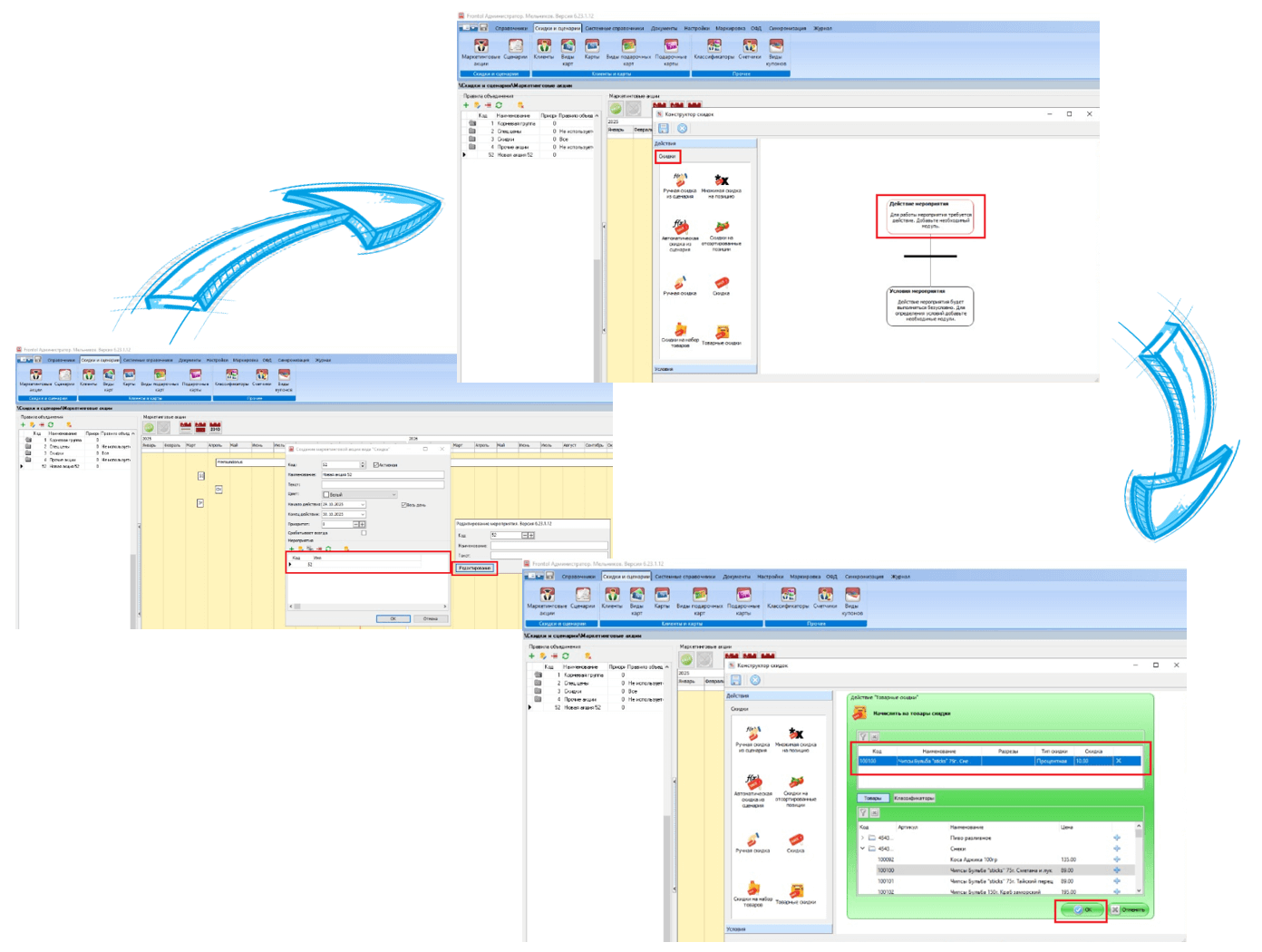 В результате чего бухгалтеру приходилось дистанционно подключаться к каждому магазину, последовательно перенастраивать условия проведения акции индивидуально для каждого заведения, тем самым выполняя повторяющиеся однотипные операции. Стоит отметить, что сроки проведения той или иной акции могут быть скорректированы в период ее действия (продлены, завершены досрочно). В таком случае, операции по работе на каждой из точек с фронт-офисом необходимо было повторить.
