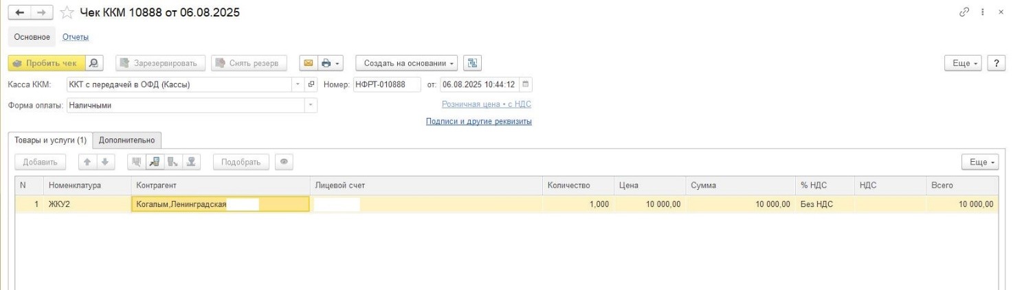 - На каждую услугу из отсканированных квитанций формировался свой отдельный кассовый чек, в котором указывалось и наименование поставщика, и сама услуга, и необходимая ставка НДС.