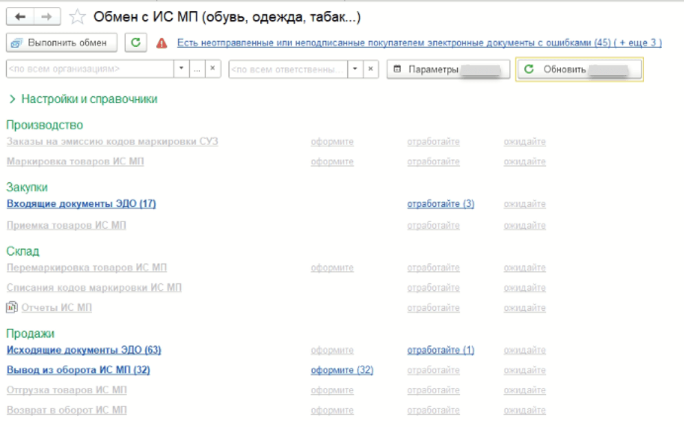 - Механизм обработки «сложных» отгрузок из ЕАЭС: автоматизирован процесс получения и подписания документов приемки через API Честного Знака для отгрузок из стран ЕАЭС.