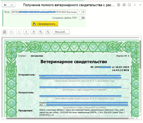 - Автоматизация ветеринарного сопровождения: реализована печать полных свидетельств непосредственно из 1С для ускорения оформления документов.