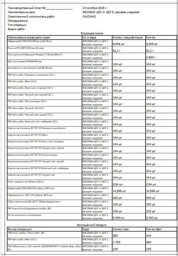 К моменту начала проекта учет находился в запущенном состоянии. Ситуацию осложняло наличие дублирующих единиц измерения и избыточного количества номенклатурных позиций в системе. Для соблюдения норм пищевой безопасности велись журналы, заполняемые вручную; корректность их заполнения проверялась специалистом отдела качества, что занимало значительную часть рабочего времени.