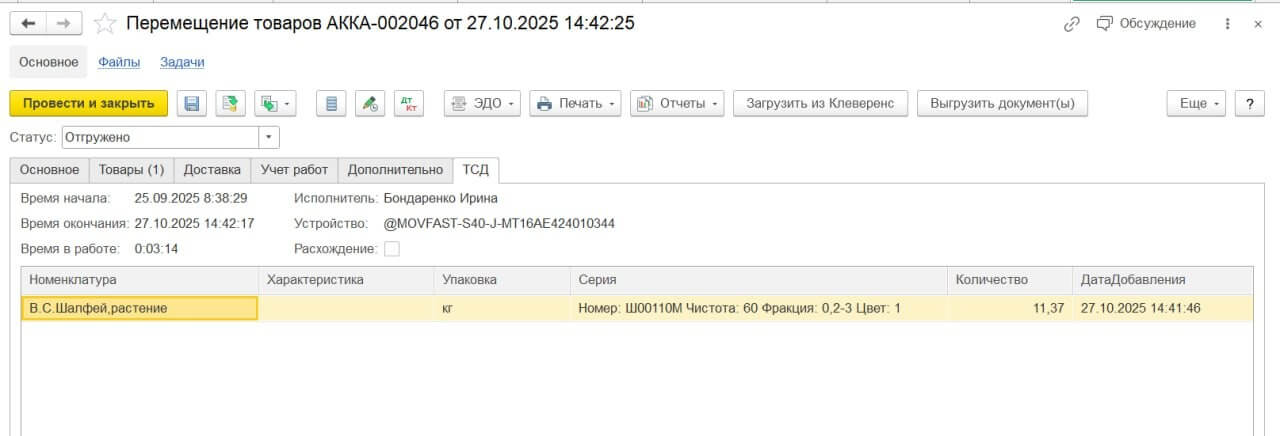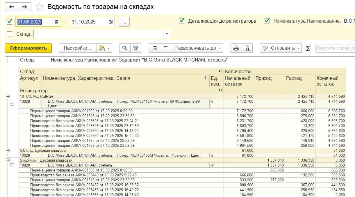 Для корректного перемещения товаров требовалось участие товароведов и специалистов в области растительного сырья. Исправление ошибок сопровождалось регулярными инвентаризациями, которые приводили к остановке складских и производственных операций. Неточный учет мелкоштучных товаров также требовал постоянных корректировок и негативно влиял на работу предприятия.