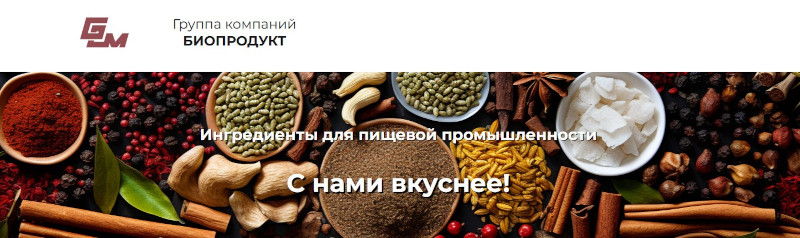 Группа компаний «Биопродукт» — производитель и дистрибьютор комплексных пищевых добавок для мясоперерабатывающей промышленности в России. Опыт работы ГК «Биопродукт», насчитывающий более 20 лет, позволяет успешно сочетать инновации, качество и безупречный сервис для клиентов. С 2003 года компания занимается разработкой, производством и поставкой инновационных пищевых добавок, многолетнее присутствие в отрасли подтверждается достижениями в области создания эффективных решений для производителей колбасы и мясных полуфабрикатов.