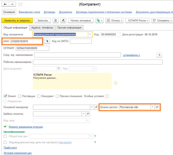 Для удобства ведения клиентской базы мы автоматизировали классификацию контрагентов по регионам. Теперь при добавлении нового контрагента его регион определяется автоматически на основе ИНН.
