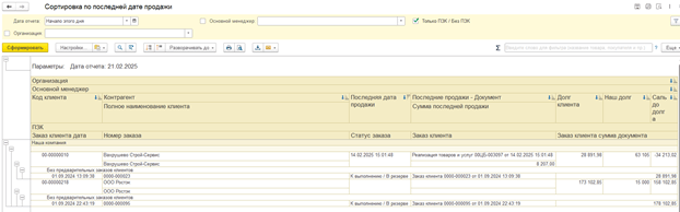 Менеджерам требуется быстрый доступ к информации о задолженностях, последних покупках и активных заказах клиентов. Мы свели эти данные в единый сводный отчет, включающий: