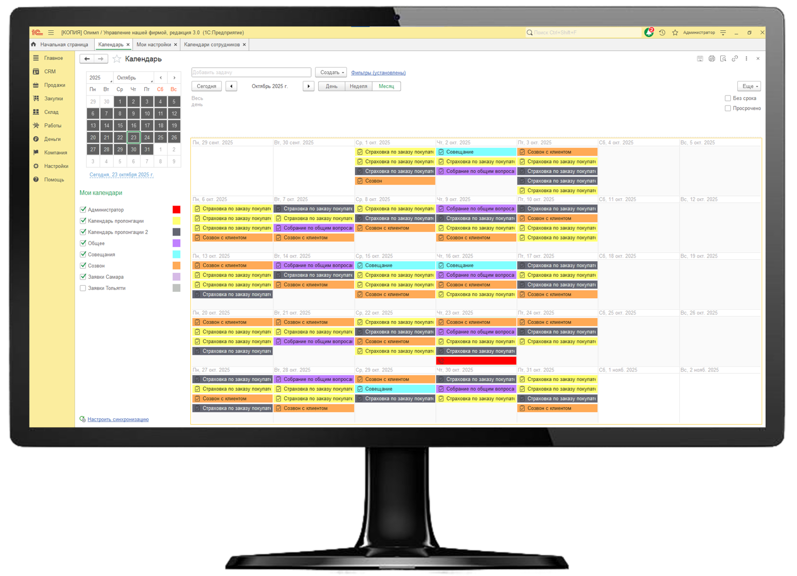 - По каждому взносу и окончанию полиса система автоматически создает напоминания в календаре 1С.