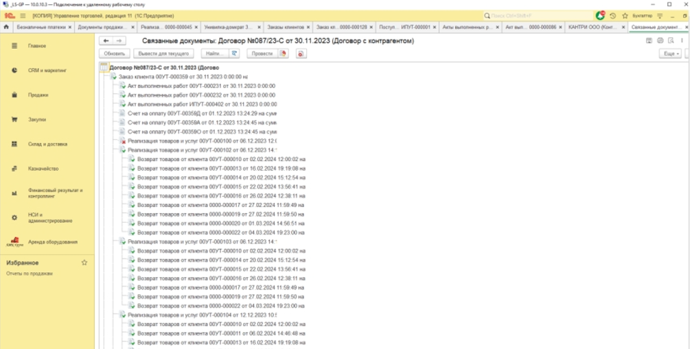 Если клиент выкупает оборудование, подсистема поддерживает сценарий продажи из аренды с корректным учетом залога (возврат или зачет).