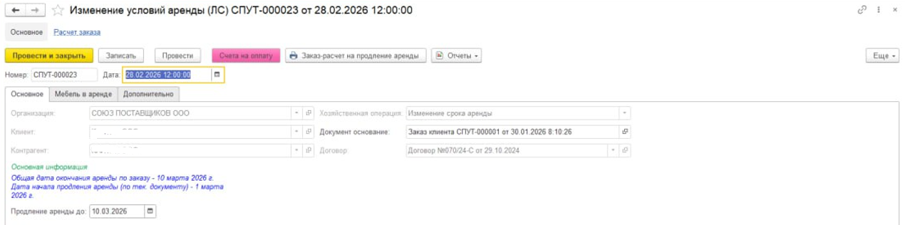 Продление срока, досрочное завершение и частичный возврат оборудования фиксируется документом «Изменение условий аренды» и учитывается при расчете начислений.