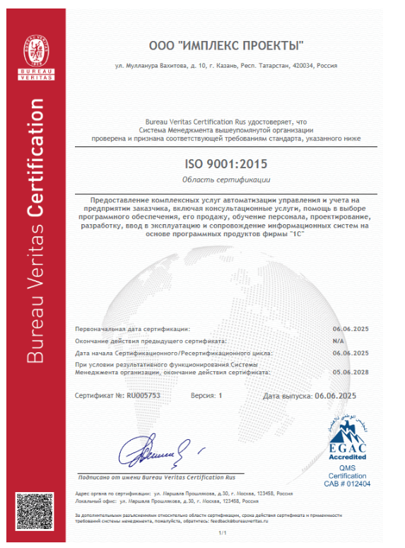 В 2025 году компания получила Сертификат качества по международному стандарту ISO 9001:2015